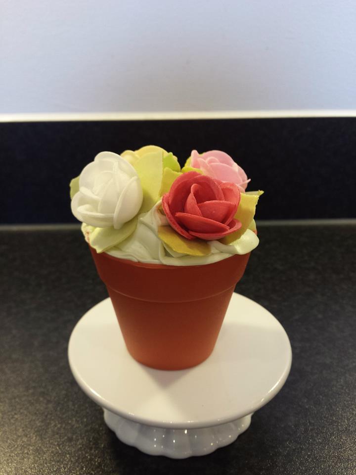 A vanilla sponge with vanilla buttercream finished off with wafer roses.