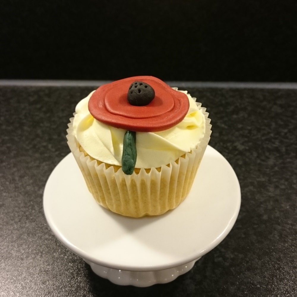Vanilla sponge with vanilla buttercream finished off with a poppy fondant.
